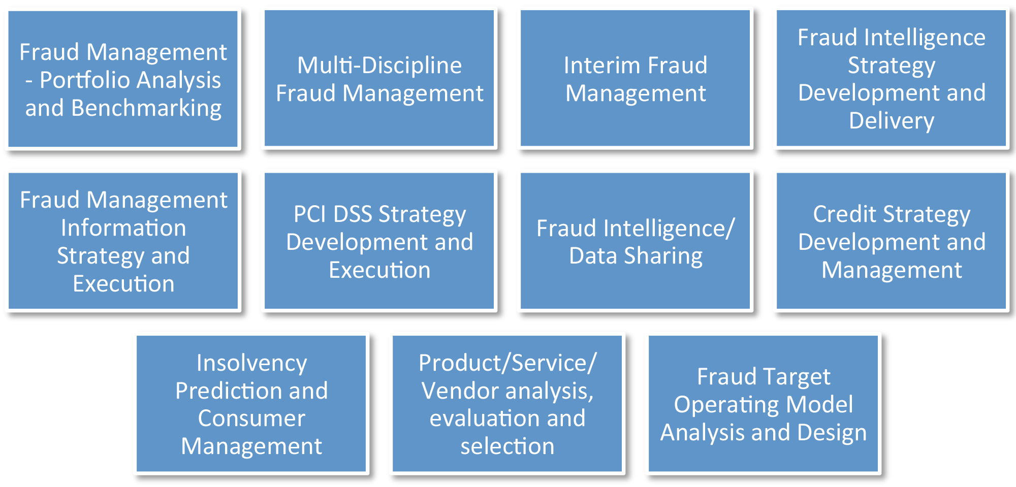 Accourt’s team of specialist consultants advise on best-in-class approaches to all significant fraud management disciplines (e.g. deterrence, authentication, detection, incident/case management, etc.).